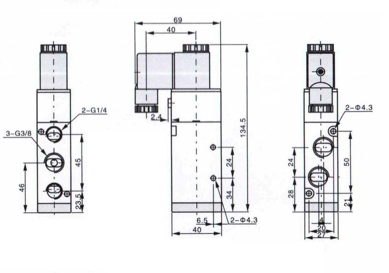 Габаритные и присоединительные размеры пневмораспределителей типа 4V 410 (аналог В 64-34А-03)